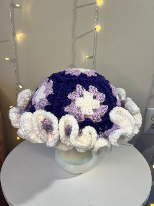 Crochet Granny Square Ruffle Hat